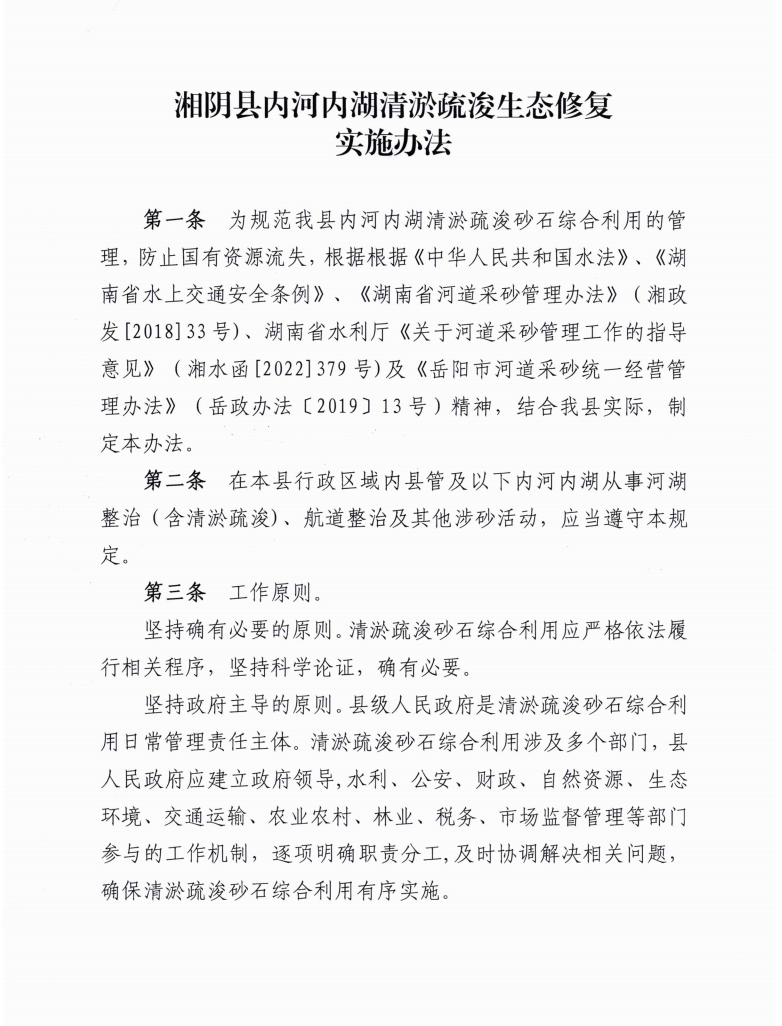 湘陰縣內(nèi)河內(nèi)湖清淤疏浚生態(tài)修復(fù)實(shí)施辦法