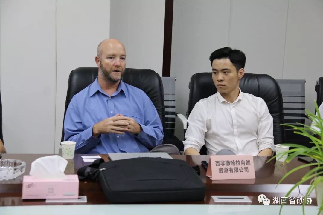 5月22日,西非撒哈拉自然資源有限公司組成考察團隊來到協(xié)會與省內(nèi)相關企業(yè)就商業(yè)合作進行了洽談,出席會議的有:湖南省砂石協(xié)會副秘書長李欣桐、蔡炳煌、專家委員會委員譚建農(nóng)、湖南省礦業(yè)協(xié)會秘書長王彪、西非撒哈拉自然資源有限公司CEO Beau Nicholls、采購 Albert、助理 Michael、中國建筑材料工業(yè)地質(zhì)勘查中心湖南總隊李劍、中國葛洲壩集團公司李文炯、泰富重裝集團有限公司Matthew、張鵬、左小勇、于勇。