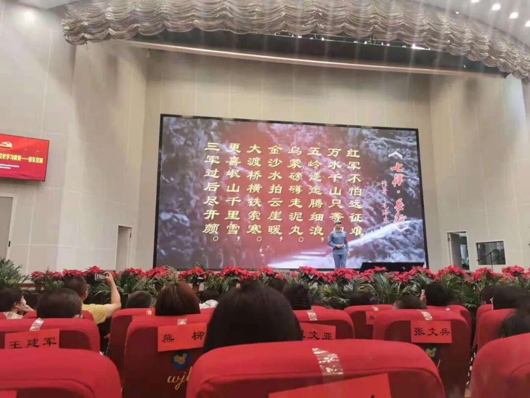 音樂黨課現場演奏了《沒有共產黨就沒有新中國》、《七律.長沙》、《義勇軍進行曲》、《秋收起義歌》、《在希望的田野上》等多部紅色藝術作品,這些激蕩了幾代人青春的經典作品,謳歌了中國共產黨百年來的光榮歷史和豐功偉績,表達了對中國共產黨建黨百年的美好祝愿,為我們帶來了一場視覺和聽覺上的盛宴。