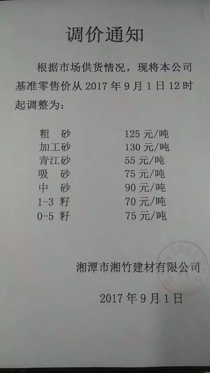 隨之,湘潭市某建材公司也發(fā)布了新一輪的調價: