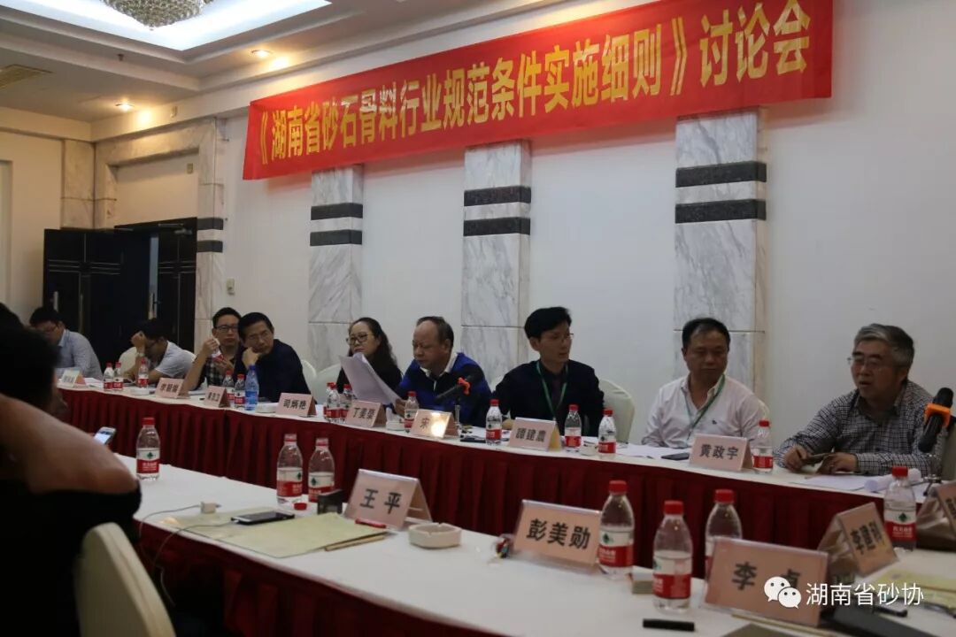 會議中,各職能部門領導、行業專家及企業代表就湖南省地方標準《預拌混凝土用機制砂》及《湖南省砂石骨料行業規范實施細則》兩個主題表達了自己的建議,并且進行了激烈的討論。