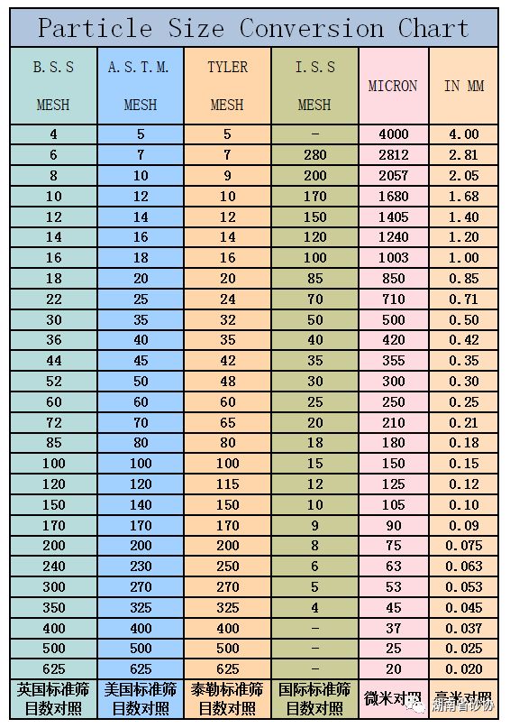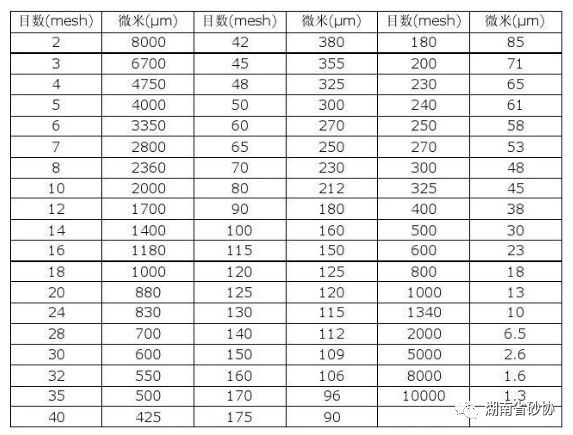 目數(shù)與粒徑及比表面積的對(duì)應(yīng)關(guān)系