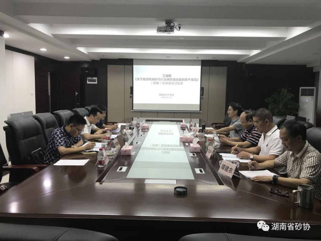 2018年8月11日,湖南省砂石協(xié)會在長沙市召開《關于工信部<關于促進機制砂石行業(yè)高質(zhì)量發(fā)展的若干意見>草案征求意見的討論會議》